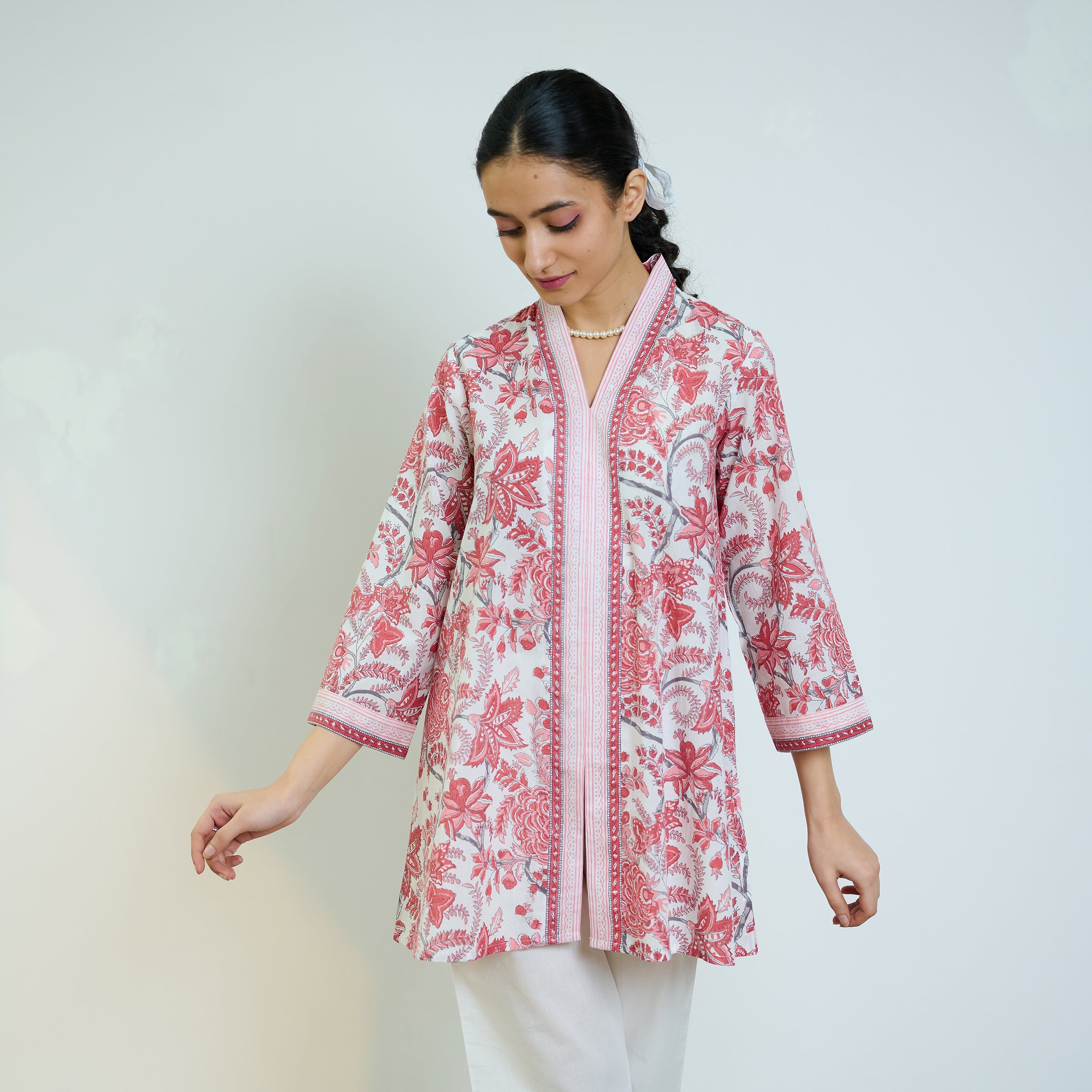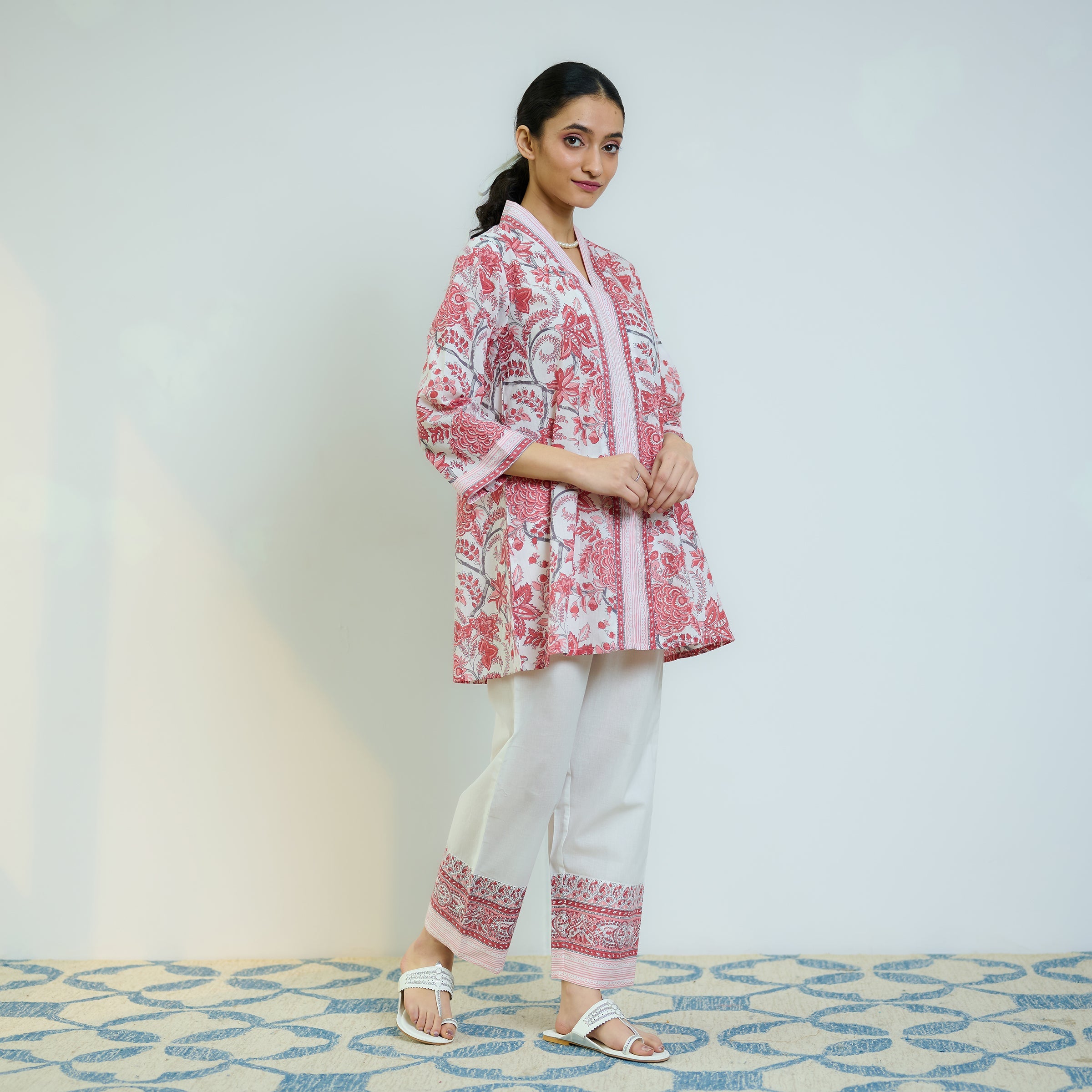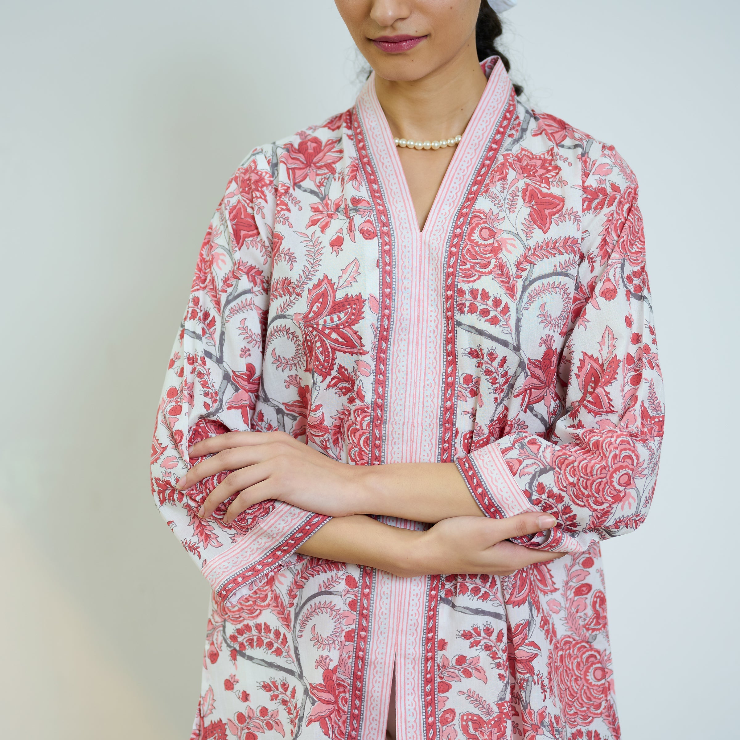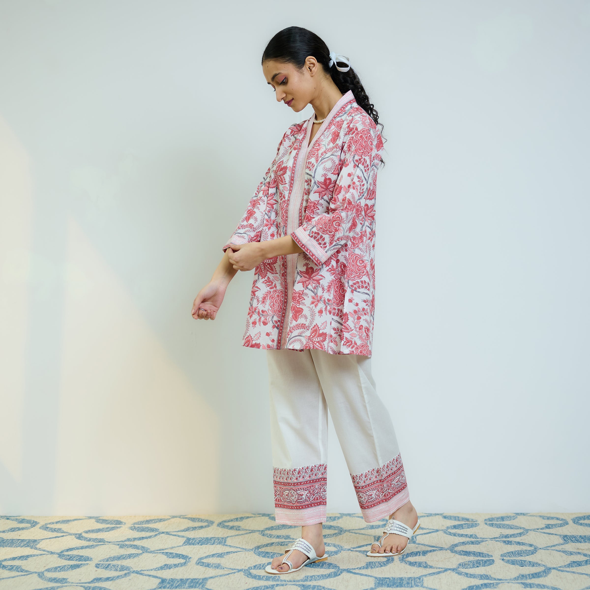 Peach Red Sanganeri Printed Cotton Co-ord Set