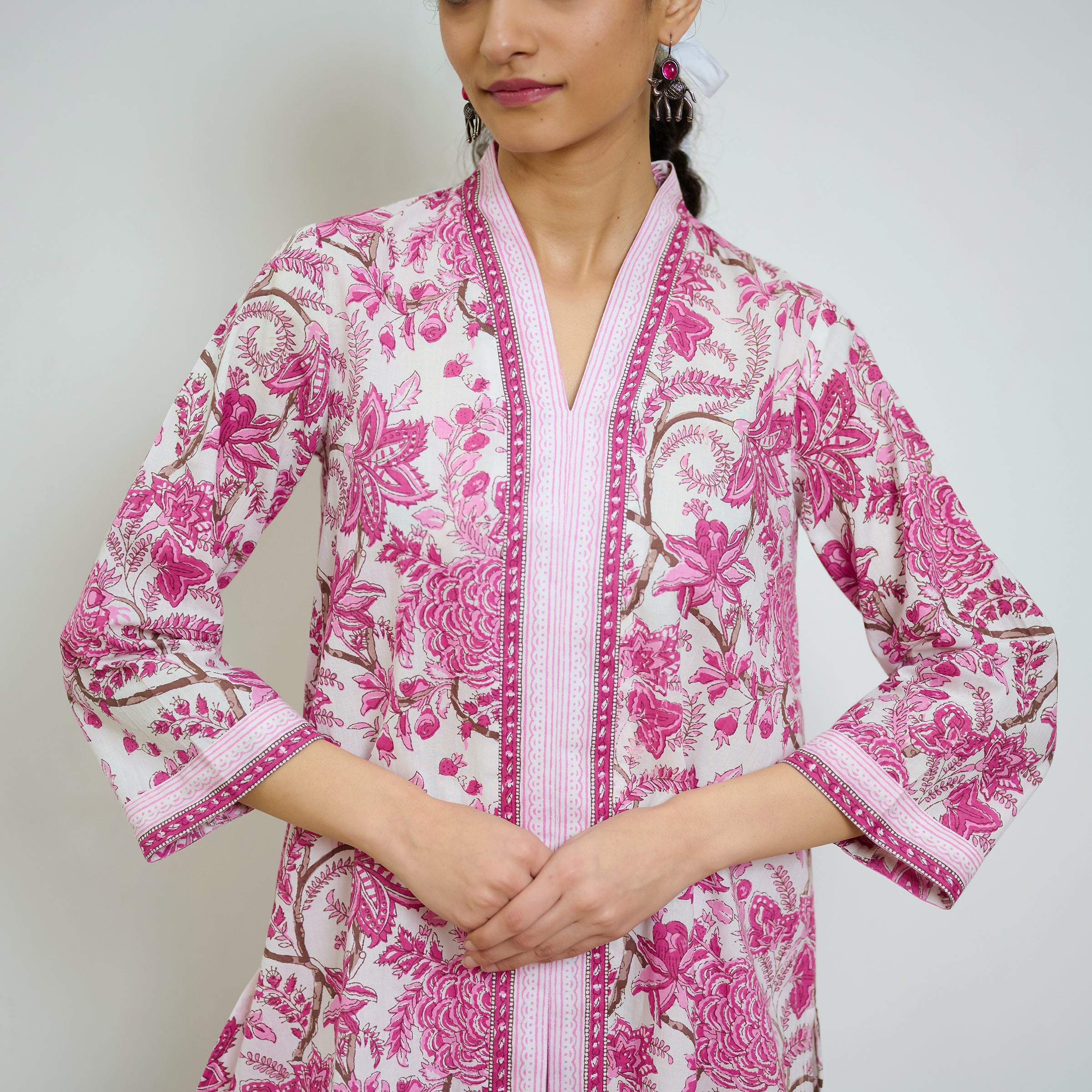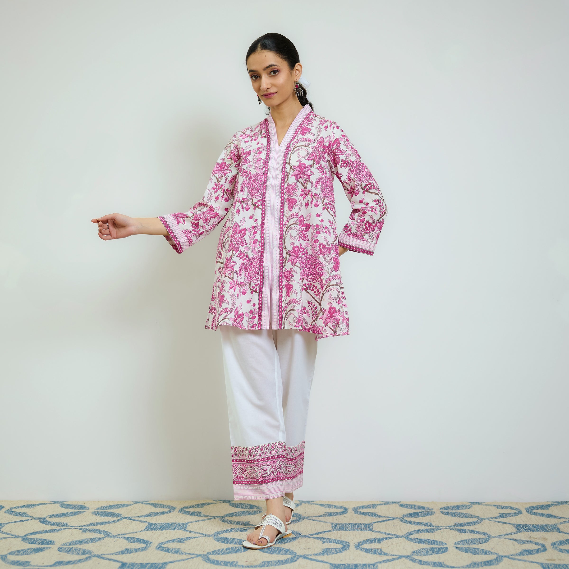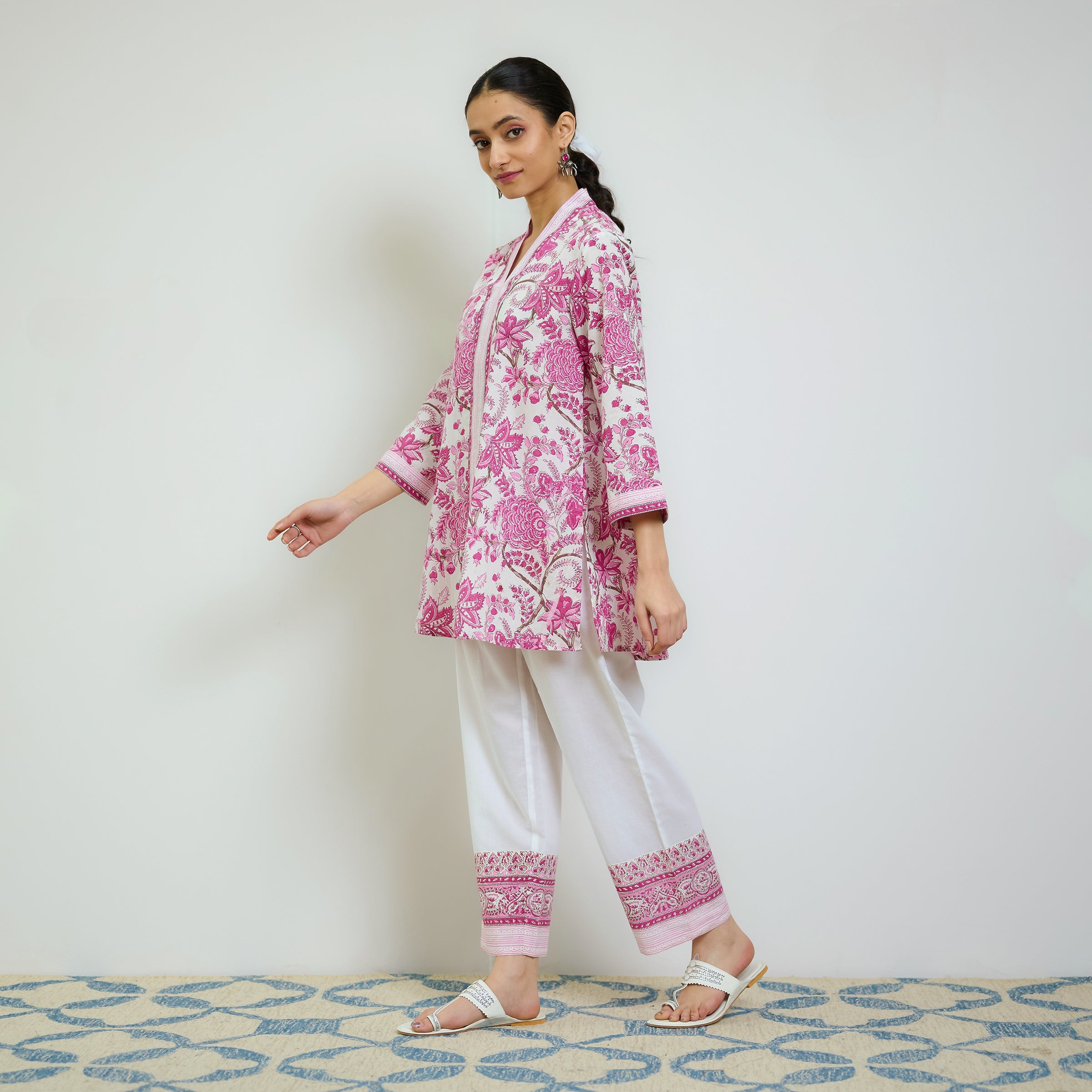 Rani Pink Sanganeri Printed Cotton Co-ord Set